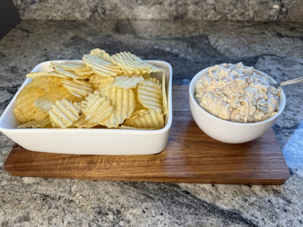 I love serving with chips… sturdy wavy chips are the best! By the way… I get compliments on this chip and dip bowl all the time…. it’s not Crate and Barrel… It’s WALMART! Under $19. Here’s the link!